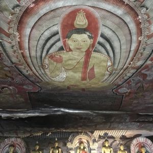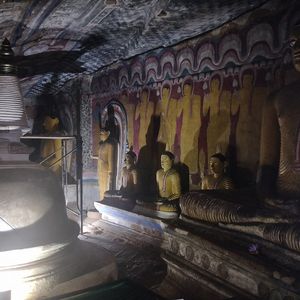 5つの石窟からできた黄金寺院、ダンブッラ。これらの石窟は全て自然の洞窟を利用し、シンハラ王朝が建造、修復したものです。5つあるうちの3つの石窟は、11世紀に金箔で覆われた73体の仏像が置かれたため、黄金寺院の呼び名がつきました。数々のきらびやかな仏像や仏教説話を描いたフレスコ壁画は圧巻です。