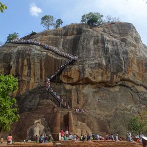 ひとり旅応援プランを利用して参加しました。ガイドさんと運転手と私の3人でした。ダンブッラまでは途中少し渋滞がありましたが、4時間弱で着きました。黄金寺院は、岩の中によくこれだけのものを作ったと感動しました。その後、早めの昼食をとりましたが、バッフェでは一般的なメニューに加え、スリランカカレーなどもあり楽しめました。シギリヤは想像していた以上に大きく高く壮観でした。スリランカの学校の休みの期間の土曜日だったので混んでおり、途中で休みながらの登頂となりましたが、体力的にはかえって良かったです。上からの眺めは最高で登頂の疲れを忘れるほどでした。その後はアーユルヴェーダなどの追加のアトラクションも提案してくれましたが、前後の日程がタイトだったので、まっすぐ帰り、7時半ぐらいにコロンボのホテルに着きました。往復の移動は少し長いですが、大変満足のいくツアーでした。