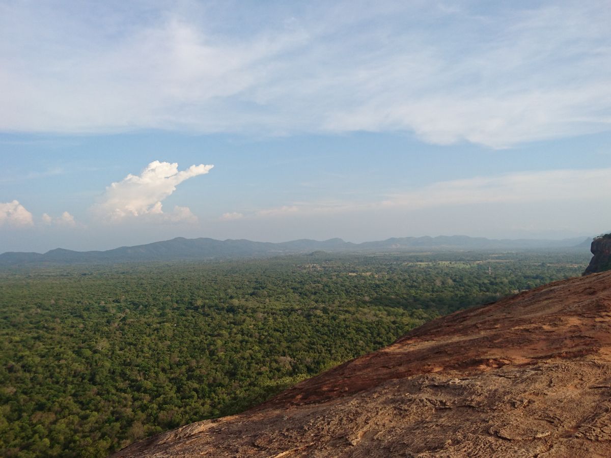 本当に登ってよかった!終盤少し険しい岩場がありますが、シーギリヤロックを一望でき、自然も広がる絶景は必見です。頂上は広く、人も少なく、のんびりと景色を楽しめます。