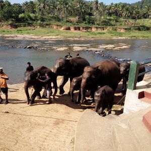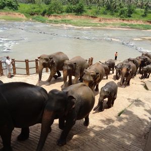 あと、ピンナワラでゾウが水浴びをしているところは見れましたが、水浴びの後、道路を渡って帰る姿を見たかったのに、レストランが他のお客と一緒になったら混むからと言われ、先に昼食をとっていました。そしたら、水浴びをしていた像達がいきなりいなくなり、もしかしてもう帰って行った?と思い、急いで食べて走りましたが、像の行進は見れず残念でした。怪我をした像の行進、わずか5頭は見れましたが。。。ガイドは何時に像が帰るのかわかっていたはずです。