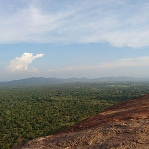雨期ということで心配していたお天気ですが、私たちのシーギリア観光には全く支障ありませんでした。曇り空でしたが、カンカン照りよりも楽でした。有名観光地なのでどんなに混んでいるかと思いきや、この日はそれほど観光客も多くはなく、スムーズに登頂できました。最後の階段を登ると、達成感と共に目の前には一面の緑が広がっていました。自然の緑の美しいこと!