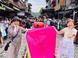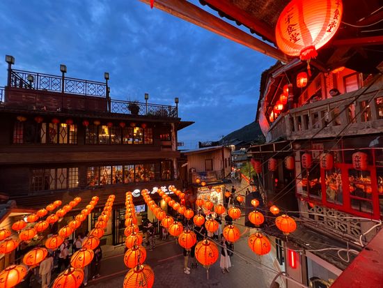 九份は、提灯の灯りに包まれた幻想的な街並みがとても印象的でした。ガイドのキュウさんがバスの中から阿妹茶樓の予約をしてくださり待ち時間なしで席に着くことができました。他の参加者と同じテーブルで楽しいお茶の時間となりました。事前にオススメのお店を聞いていたので効率よく周ることができ充実した90分でした。十分では、願いを書いたランタンを空に飛ばす体験が心に残り空に舞い上がる光景がとても美しく感動しました。2階建てバスの座席は広めで帰りはグッスリ寝てしまいました。参加して良かったです!