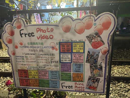 夜に天燈をしたくて、申し込みました。 家族の健康と幸せに願いを込めて 手を離して飛んでいく瞬間、なんとも言えない気持ちになりました。 素敵な体験が出来ました。 夜はお店が開いてないですが、 特に気になりませんでした。