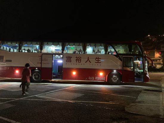 車中ガイドの林さんが流暢な日本語で、ジョークも交えたトークが面白かったです。丁寧な手書きの地図も一人ずつ配って説明してくれて、とても細やかな心遣いでした。 九份は夜8時位は観光客が少なくなるようで、阿妹茶楼のテラス席に座れました。(高山烏龍茶、一人350元) すばらしい夜景をみながらゆっくりお茶が味わえて、初めての台湾でしたが良い思い出ができました。