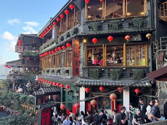 九份散策3時間の予定でしたが、三連休の初日で交通渋滞となり、少し短くなってしまいました。ツアーガイドのヨシさんが、九份の歴史やお勧めの場所など説明してくださり非常にわかりやすかったです。人は多かったですが、阿妹茶楼は待ち時間30分程度で入れました。今回は天気に恵まれ、海まで見渡せる景色や、日没後の赤い提灯がとても印象的でした。