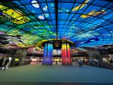 混雑しているところは傘はさせないですが…上下の通行手段は階段しか無いため、ベビーカーは使えません。お子様連れには少々難易度が高いかと。あと、平日がbest