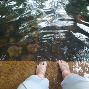 水位が低いと、海の中に入れます。小さなカニがいて可愛かったです。