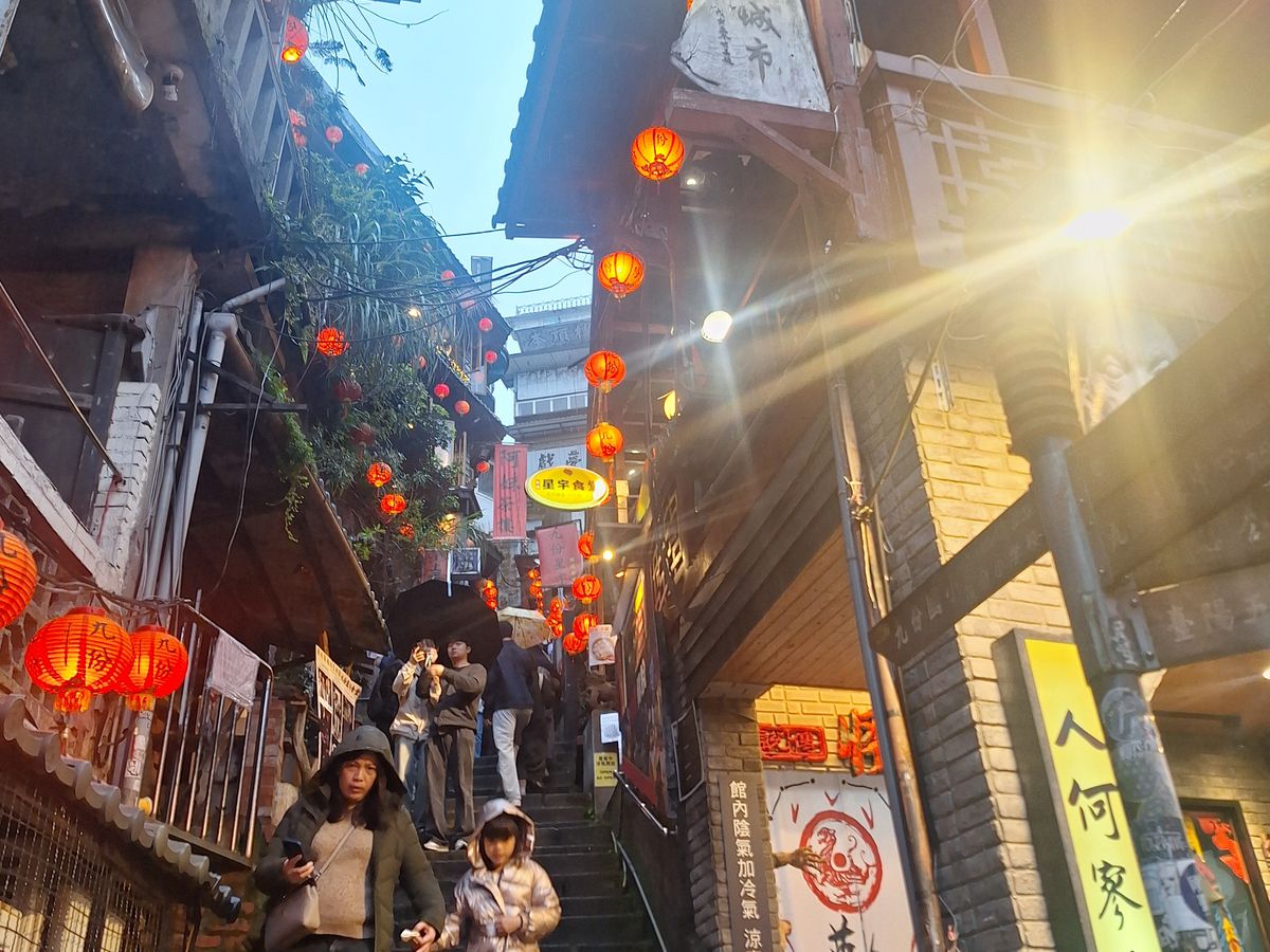 夕暮れ時提灯が灯り始める頃の九分の景色を見る事ができ、九分茶坊でのお茶や十分での天燈上げも体験でき、本当に満足度が高いツアーでした。