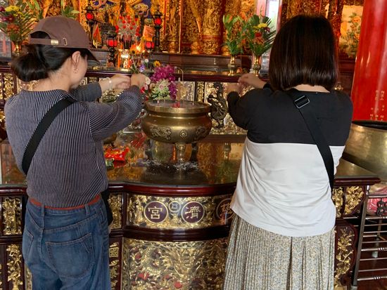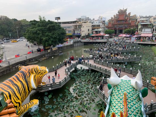 三峽はお寺とその周りにあるレンガ造りのお店がたくさんあり、観光地なのでお土産探しをしたり牛角というクロワッサンが名物なので食べました。