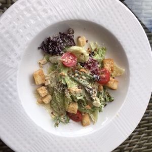 ●ランチはガラス張りの室内テラスのようなオシャレなレストランでシーザーサラダ、仔羊のお肉、蒸し餃子、干しシイタケの薬膳スープ、デザートのチーズケーキ、全て美味しかったです!