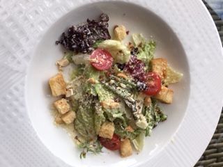 ●ランチはガラス張りの室内テラスのようなオシャレなレストランでシーザーサラダ、仔羊のお肉、蒸し餃子、干しシイタケの薬膳スープ、デザートのチーズケーキ、全て美味しかったです!