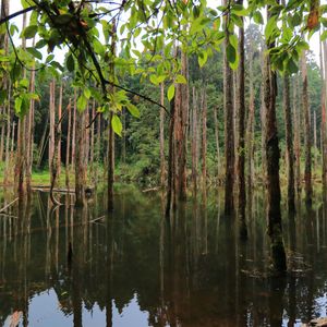 ■5分ほど歩いたら目の前には透明な池の中に死んだ木が立つ、不思議な光景が広がりました。曰く、30年ほど前に起きた地震で出来上がった自然の賜物のようで、雨が降ると池となるそうです。ということは、干上がってる時期もあるのかもしれません。