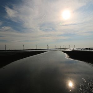 【高美湿地】は海の中に風力発電機が並ぶ、あまり今までに見たこと景色でした。時刻は夕方だったため少し傾いた太陽が海をオレンジ色に染めていて、ノスタルジックな雰囲気を醸し出していました。人は少し多かったですが、それを補っても余りある景色に満足です。