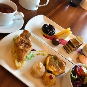 お茶は何種類かとコーヒー類も選べ、サンドイッチやフィンガーフードやスイーツ類がありどれもとても美味しかったです。帰りにはペットボトルの水もサービスでいただきました。次回は、宿泊もしてみたいです!
