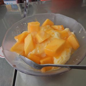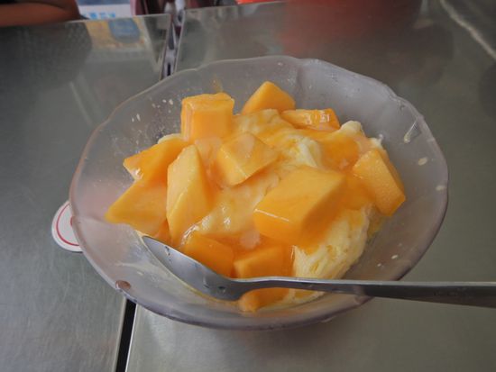 カキ氷は店内壁に貼ってある写真のようなものが出てくるのかと思っていましたが、アイスクリームが載っていない小さ目サイズのものでした。