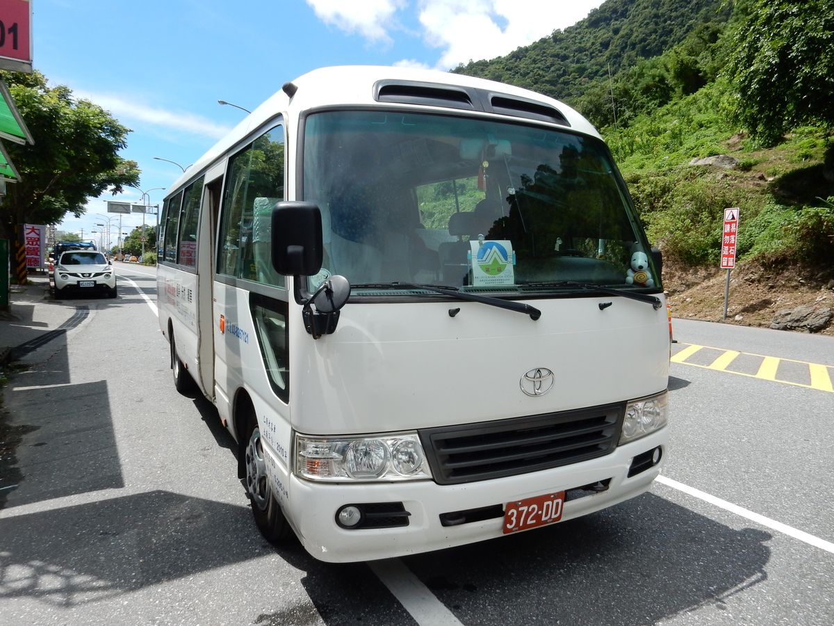 朝は台北駅徒歩5分のホテルに滞在していたので台北駅に現地集合が良かったのですが、なぜか朝5時20分に送迎時間を指定され、それから台北駅から離れたホテルの別の人を迎えに行き、6時過ぎにまた台北駅に戻ってくるという無駄な送迎でした。送迎は8人乗りのマイクロバスでしたが、台北駅でほかの人たちと合流し、合計40名(日本人は2,3割位。後はアメリカ人やフィリピン人、スペイン系の方、ドバイ、台湾等からの人など)になりました。帰りの送迎は台北駅ではぐれてしまったのでわかりません。