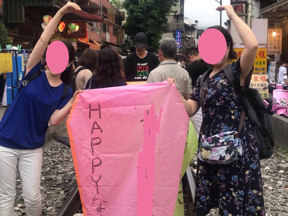 列車も見られますし、天燈上げもできました。