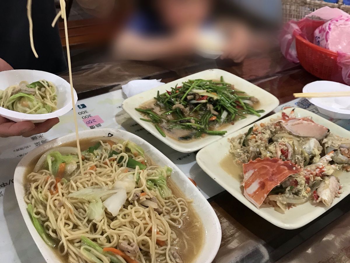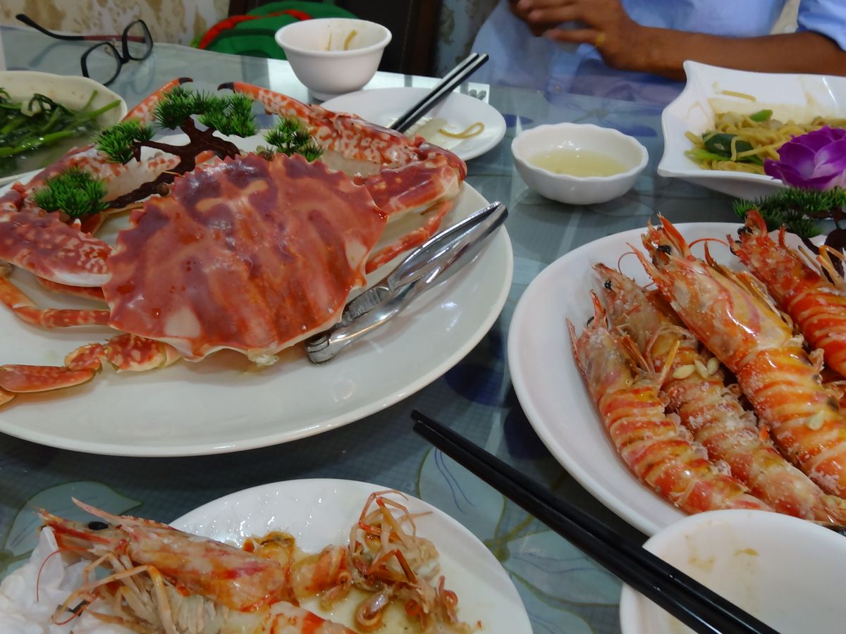 着くなり物凄い勢いで、カニはどう?ウニは?これ美味しいよ!などというようなことを中国語で話され、いくらか聞くと重さを図り、1万円以上の値段を提示され引いてしまいました。はっきりと断り、手頃な小ぶりの蟹と魚1匹、蛤のスープ、青菜炒め、焼きそばを頼みましたが、それでは足りない、お腹いっぱいにはならない!と言われましたがそれも断りました。