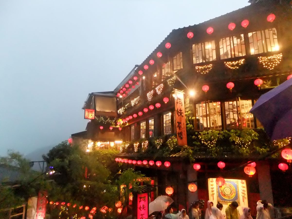 緑の藻に波が打ち上げられ輝く老梅緑石槽・野柳地質公園 のクィーンズヘッドと奇岩・ちょっと馬鹿にしてた十份 での天燈上げに感動! 九份に着いたのは遅くてお店は閉まっていましたが、その分 阿妹茶楼でゆーっくりお茶を楽しめました。 士林夜市で車を降りてブラブラ。