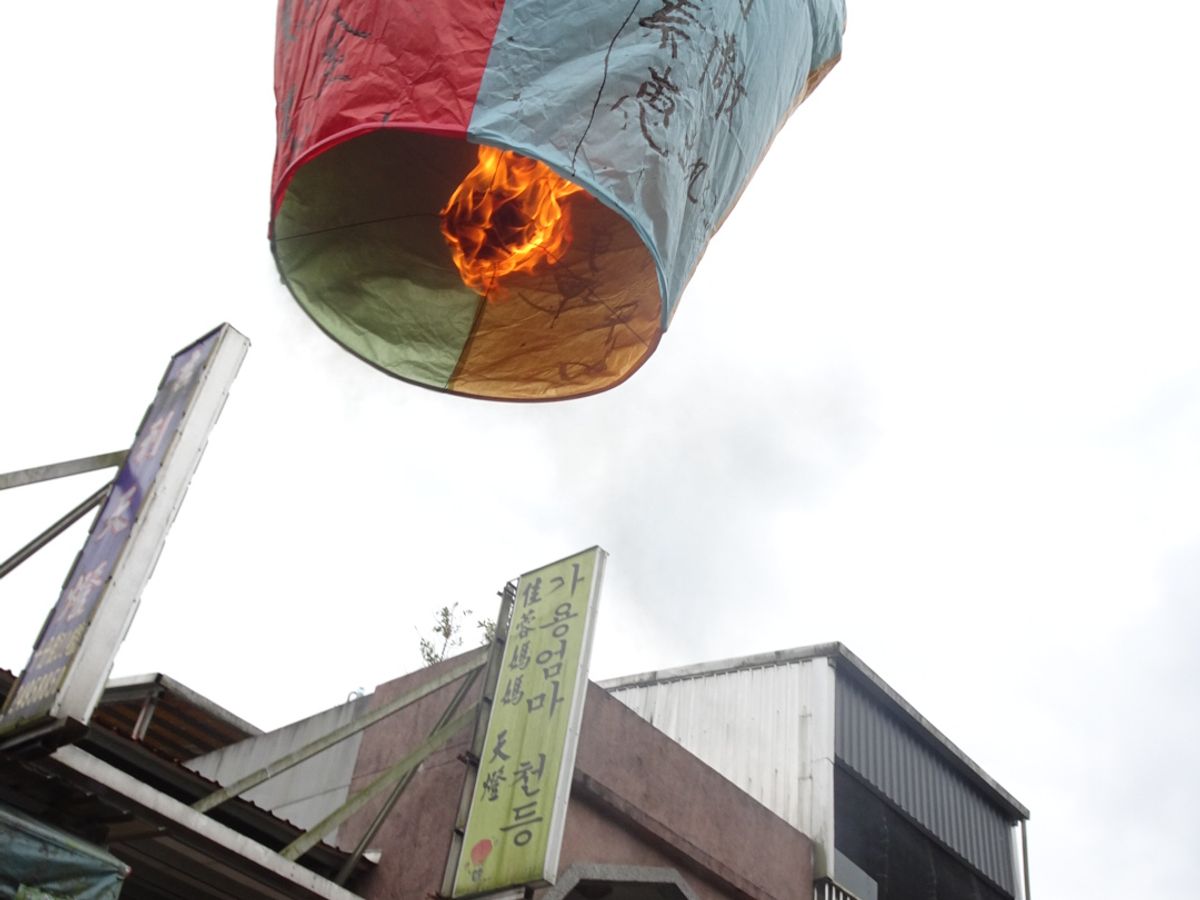 九份では雨が降ってきてちょっと残念でしたが、十分の天燈上げは雨も降っておらず人も少なく夜だったので綺麗でした。