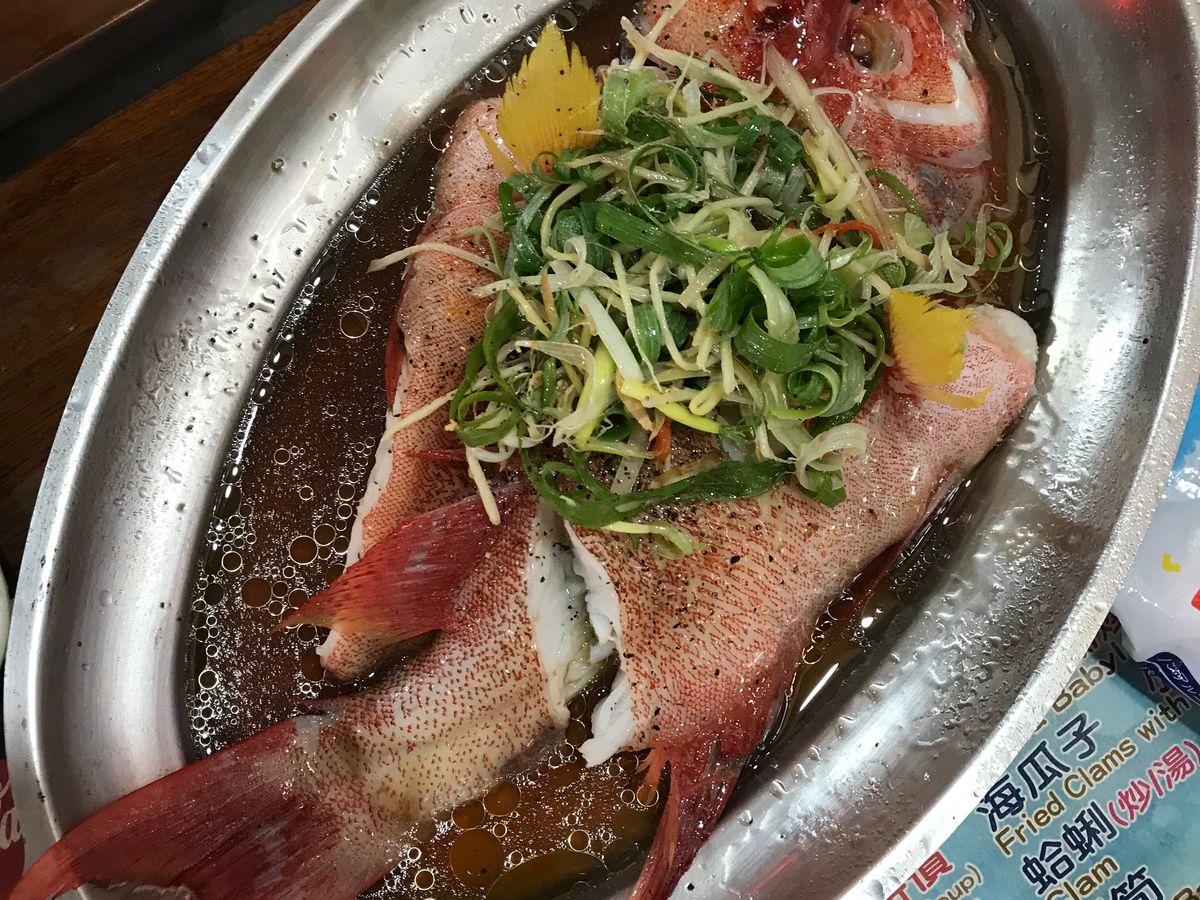 (最終的には大人3人と3歳の子供でそこそこ満たされる量で2000元ほどでした。ちなみに一応メニューは有りましたが、値段のところはほぼ時価と表記されており、指差しでこの魚と言うと重さを計ってその都度値段を提示されて買うか決める感じです)