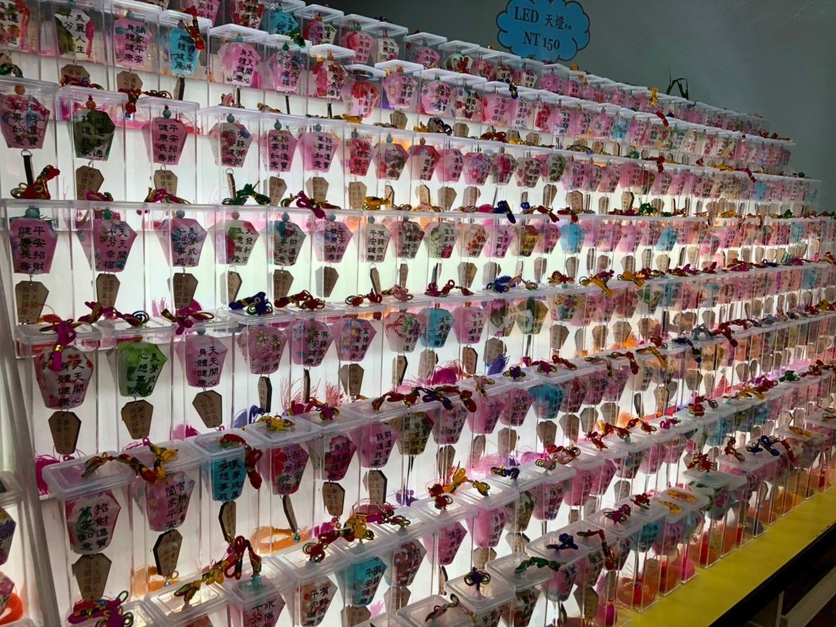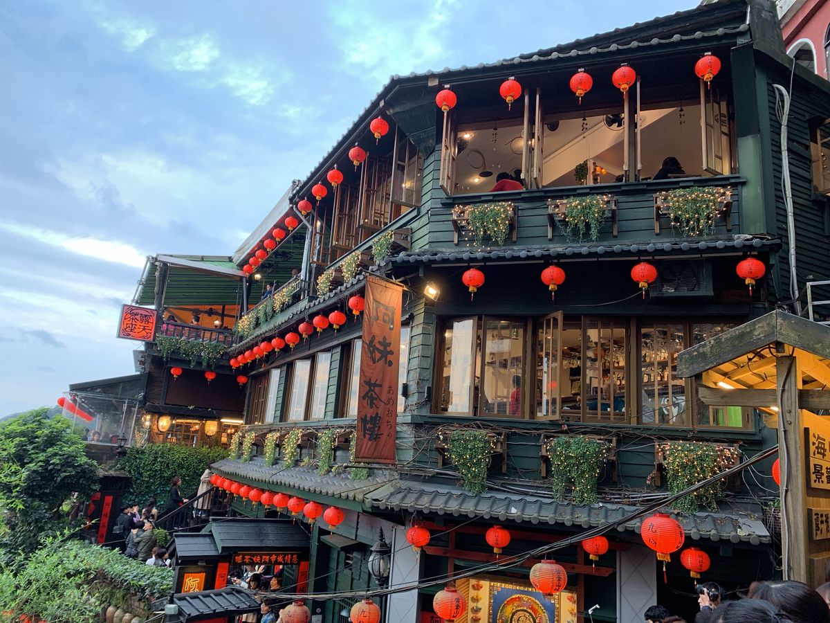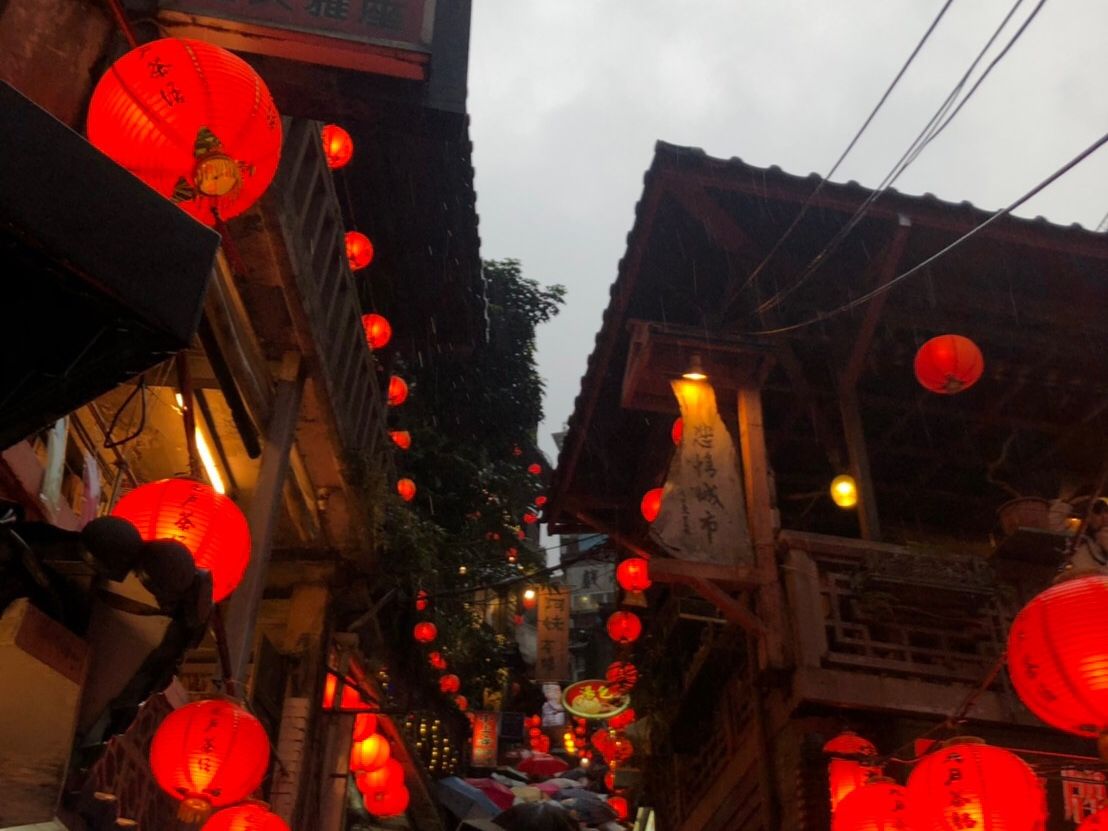 九份も竹下通り並みの混雑でしたが、食べ歩いて、明るい時間から暗くなる時間両方を見ることができ、ゆっくりお茶できました。雨の中で飛ばす十分のランタンは幻想的でした。