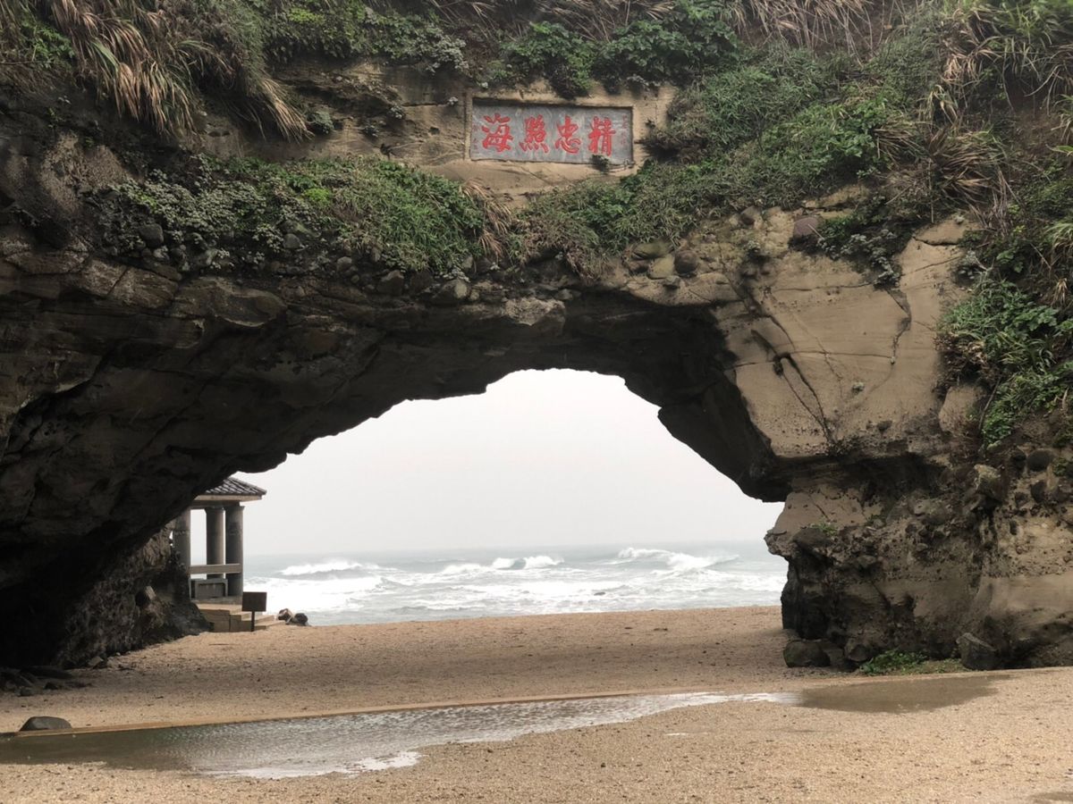 石門洞では一時的に雨が止み貝殻の浜辺を堪能しました。