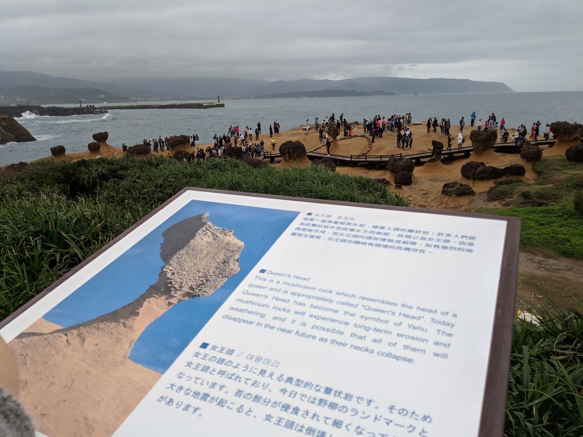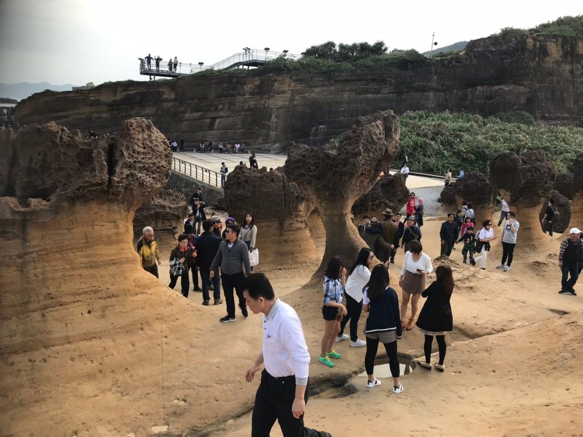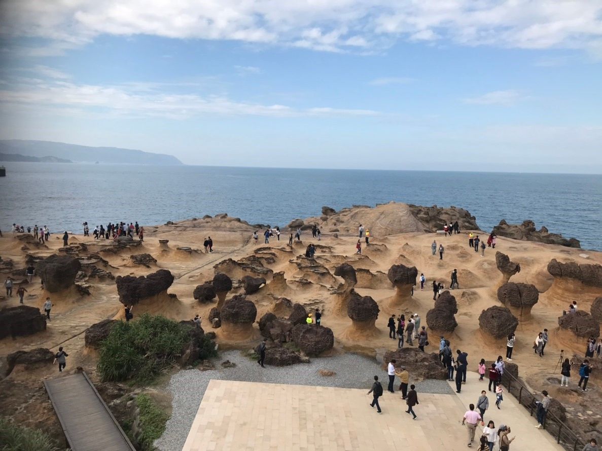 野柳へはアクセスがあまり良くないため、なかなか行けずにいましたが、行ってみて良かったです。あの不思議な景色は、一見の価値ありです。有名なクイーンズヘッドへは木道(photo道⁉)が繋がっていて、記念写真を撮る人たちが並び易いように整備され、「ここに立って」って場所には足型が!だんだん首の部分が細くなり、いつ折れるかと言われているようですので、興味ある方は早めに訪れては⁇野柳は、クイーンズヘッドの他にも、広大でハイキングも楽しめますよ。