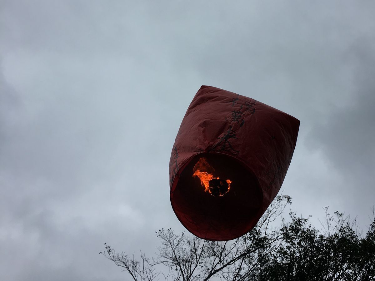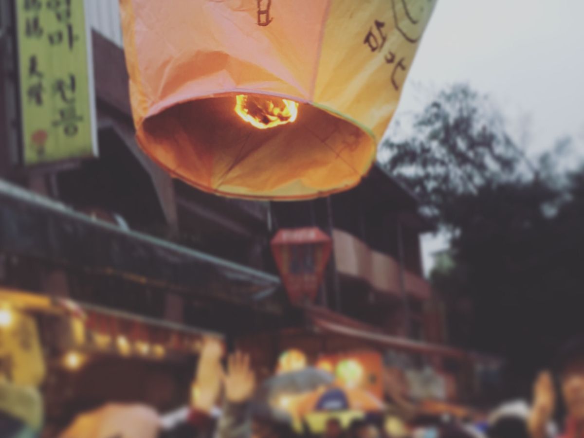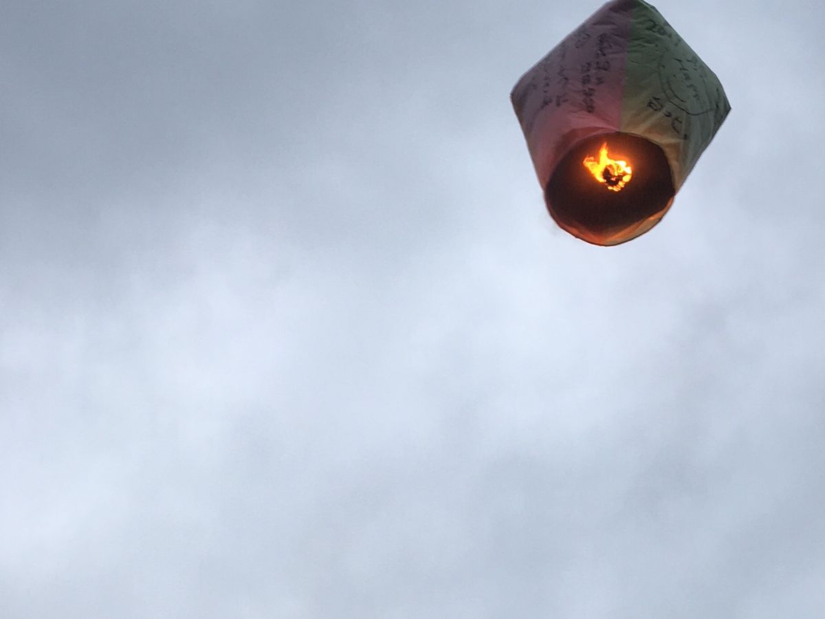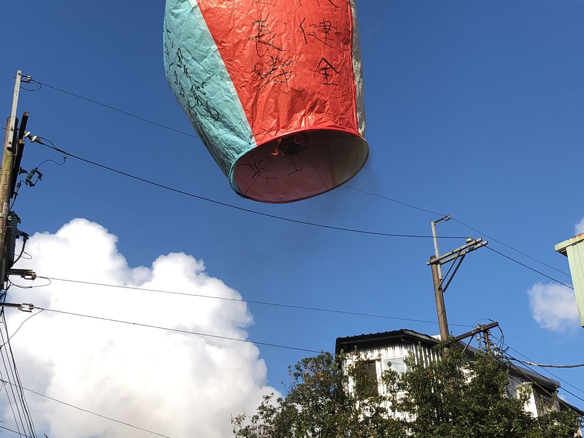 家族に一番人気だったのは天燈上げ。入り口で降ろしてくれるので
