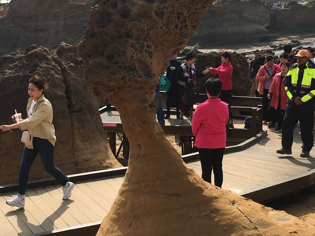 野柳の景色は不思議で、冬で波が荒かったのもあり波の花も見られてラッキー。立ち寄りを依頼していた十分の滝は雨だったので一番奥まで行くのはやめましたが参拝スポットやちょっとしたお店もあり楽しめました。