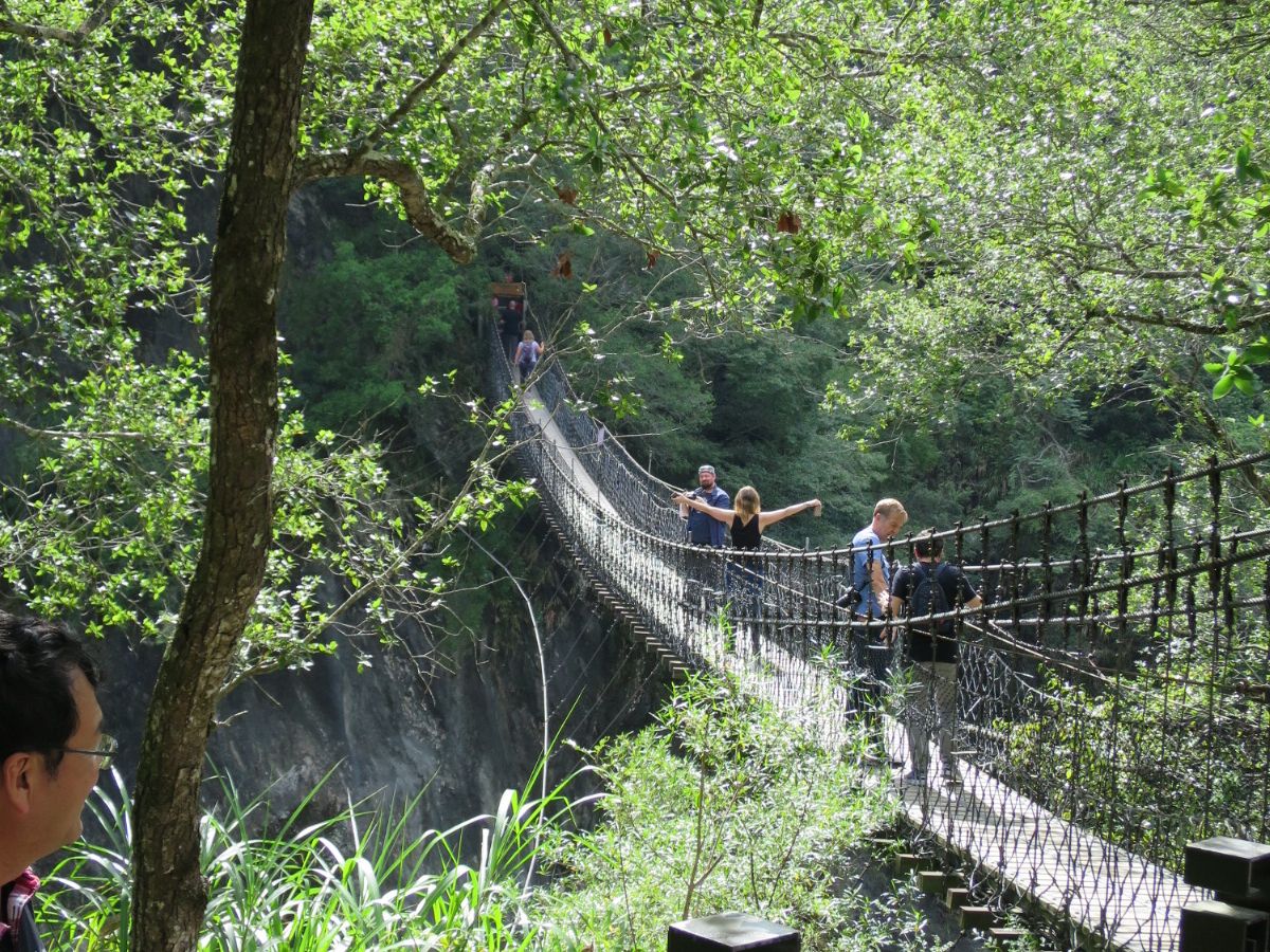 母と二人で参加しました。20年ほど前にタロコ渓谷に来たことがある母は、当時は車窓から見学しただけだったそうですが、今回は名所3か所でそれぞれバスを降りて散策が楽しめ、思った以上にタロコ渓谷をじっくり見られました。バスは大型で乗り心地は良かったです。ホテルでのランチも予想以上においしく、食後に周囲を散策する時間も十分ありました。帰り道ではサービスなのか吊り橋に寄ってくれました。ツアーは私たちと日本人ご夫婦以外は欧米の方たちばかりでした。ガイドさんは英語の方がまだ得意のようで、日本語は分かりにくかったですが、終始笑顔でにぎやかな女性ガイドさんでした。てきぱきと効率的なガイドでした。