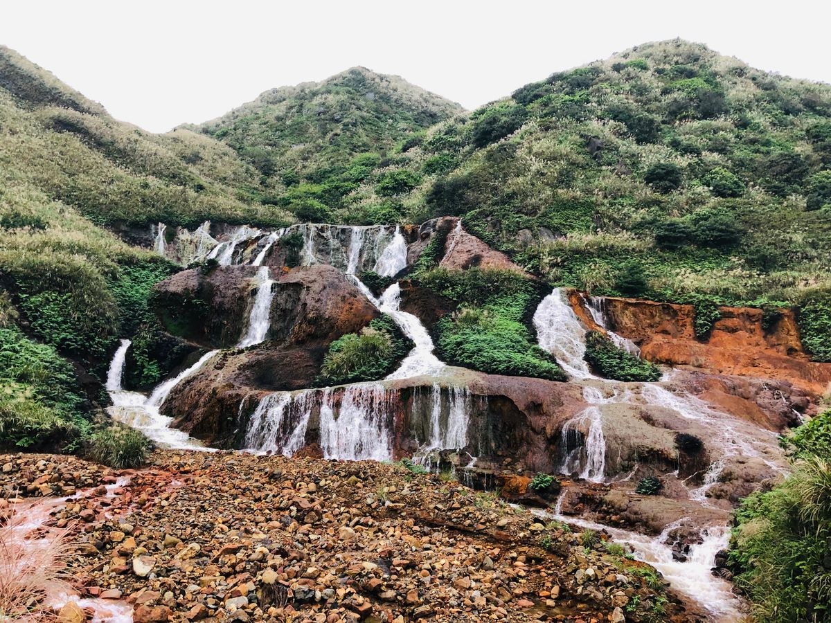 九份へ行く途中、黄金瀑布や報時山歩道などの景観スポットにも立ち寄りました。