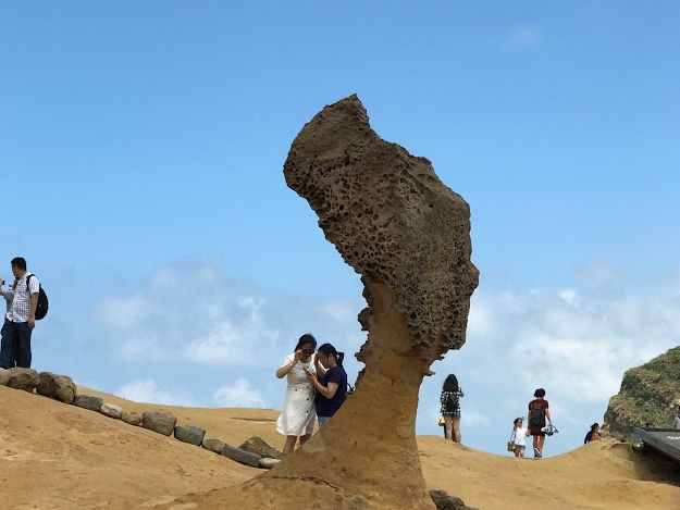 野柳(奇岩の海岸)のクーンズヘッド他は想像したよりも感動的でした。岩のそばまで立ち入ることができて大満足です。また、ウニの化石が足元に散在しているのもここならではと思います。あいにく荒天で波が高かったのですが、むしろそれが荒涼感を増してくれました。