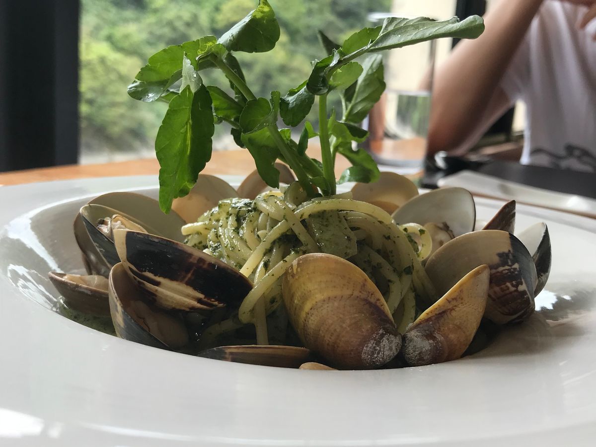 温泉に2時間くらい入って、その後にランチを食べました。ランチは前菜・サラダ 5種類の中から一つチョイス、メインもパスタとリゾット5-6種類の中から一つチョイスすることができて、おいしかったし、量もちょうど良かったです。