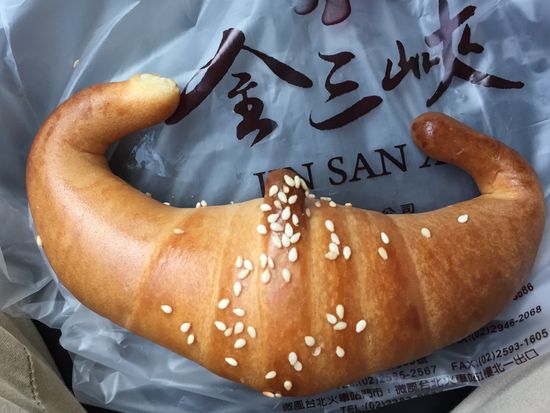 観光は決められたコースだけでなく+アルファの解説もあり、これはここの名物で有名なんだとパンを頂きました。写真を撮りますよと言ってくれたり、ここは小学校です、この木が台湾で一番多い木です、駅です、台北は土地が高く一軒家は少ない、101ビルは当初は世界一だったけど今は4位になってしまった、前を走っている車は100万エン(台湾元)、、、などベテランドライバーらしく間の取り方もグッド。(こちらがウトウトしてる時は静かにしてくれています)