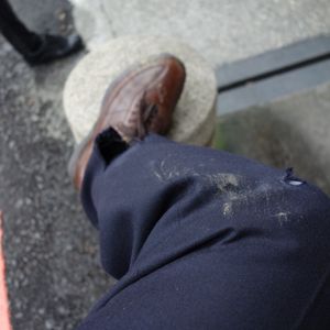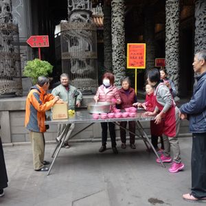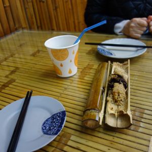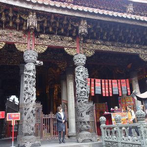 目の前の穴ぼこに気づかず 転倒 ズボンはやぶれ 擦り傷大。応急対応できず 次の鳥来の町の ファミマで 薬・メンデイングテ-プ・ガムテ-プを購入し救急対応。(これが台湾で最初で最後のコンビニ利用です) 鳥来の町は ひなびた東北の温泉の雰囲気 硫黄のにおいはなく ここで食べた竹筒おこわは おいしかった。評価B。次は三狭楼街まで約1時間のドライブ。お寺に最初にお参り。見事な彫刻や寺の雰囲気は市内の龍山寺より素晴らしい。台湾のいくつかお参りしたお寺の中では 評価A 中で薄めのぜんざいが 無料でくばられごちそうになりましたが おいしかった。 また訪ねたいお寺です。街は 狭いが 雰囲気があり映画のセットのよう。名物の牛角パン(クロワッサンのような形)を3箇所の店で食べ比べました。豚の血の固めたおもちのようなものもトライ(これは辛かった)皆さんも食べる価値あり。評価B
