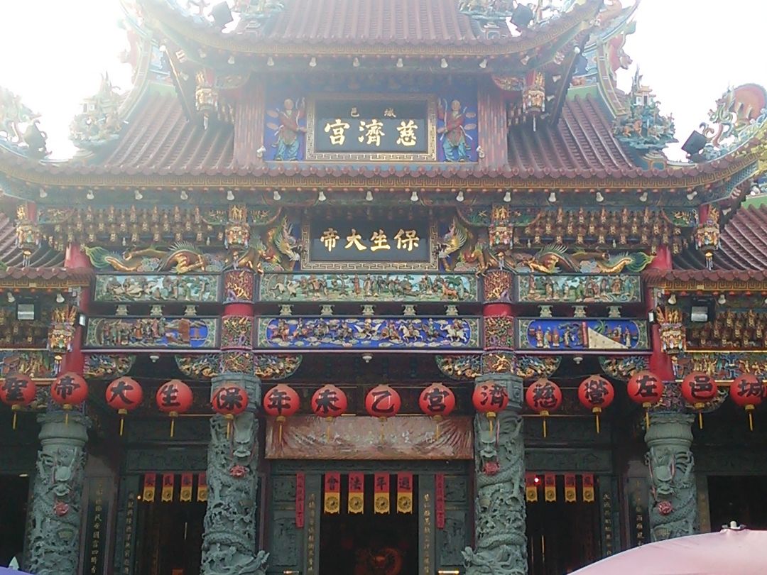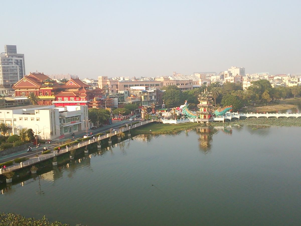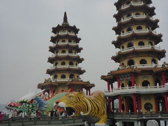 大晦日に台北から日帰りで高雄まで行ってきました。往復台湾高速鉄道を利用しての小旅行です。曇りの台北駅から1時間半で快晴の高雄(左営駅)に到着。午前10時だというのに気温は25度真夏の気候です。早速、中二階の素晴らしい観光バスに乗り込み市内観光がスタート。まずは フェリーにて旗津半島へ渡り、天后宮・島内の街並みを散策 。さすが島の中だけあって海産市場や海産物の露天などが連なっていました。地元で有名な紅毛港というレストランで海鮮中華の昼食をとった後、台北101の次に高い、高雄74展望台に上りました。360度高雄市内を見渡せ最高の眺望でした。大晦日なのにとても空いていました。最後に龍虎塔に行きましたが、私はここが一番の楽しみでした。この施設は無料なのに最高のロケーションでいうことなし。龍虎塔の前にたたずむ慈済宮をお参りして最高に満喫したツアーは終わりました。帰りの新幹線の中で今度はゆっくり来たいなと思いました。