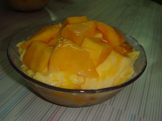 暑ーい港見学後のかき氷、参加者5名、全員マンゴーアイスを注文しました。台北で評判のマンゴーアイス店よりこちらのマンゴアイスがおいしかった。氷自体がマンゴー色、マンゴージュースを凍らせたアイスを使用しています。10元でアイスをトッピングしてもらいました。(このアイス、シャーベットでなくソフトなマンゴーアイスでとても良かったです)