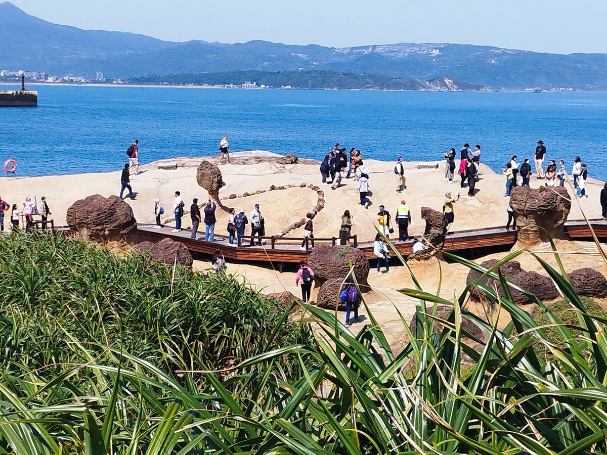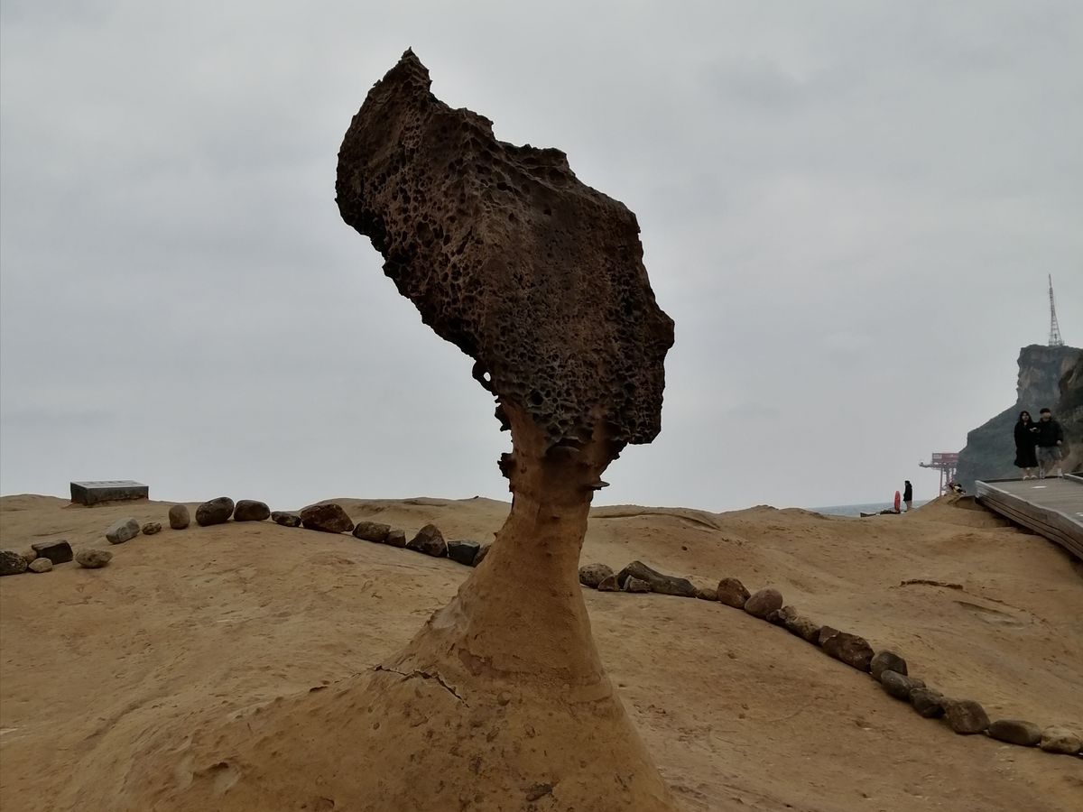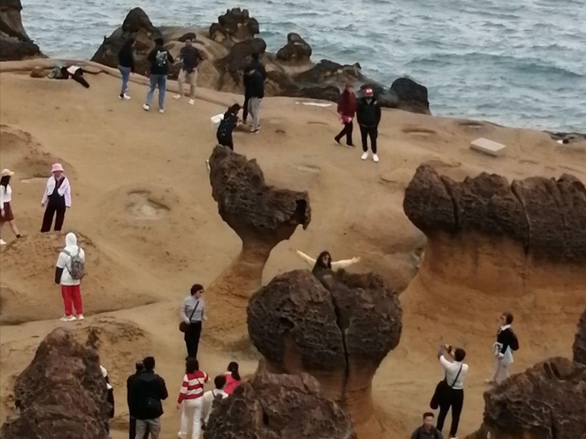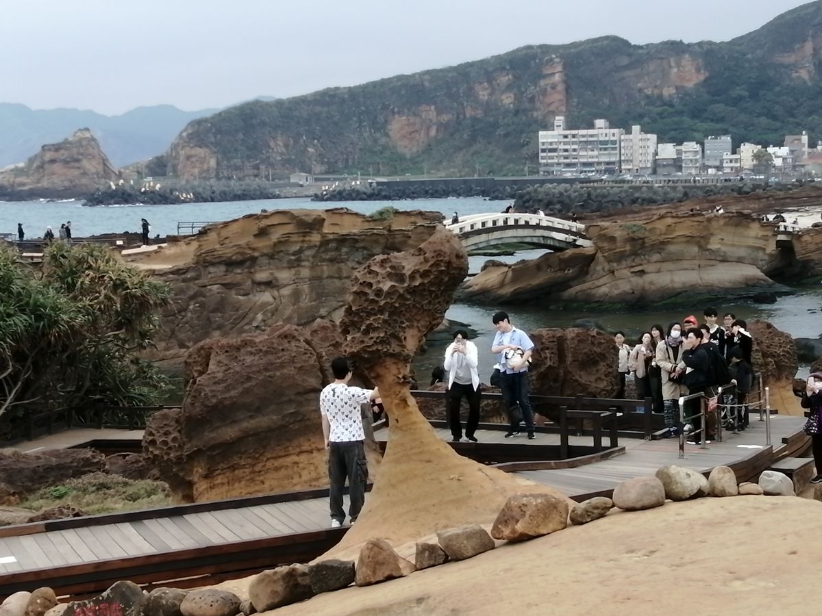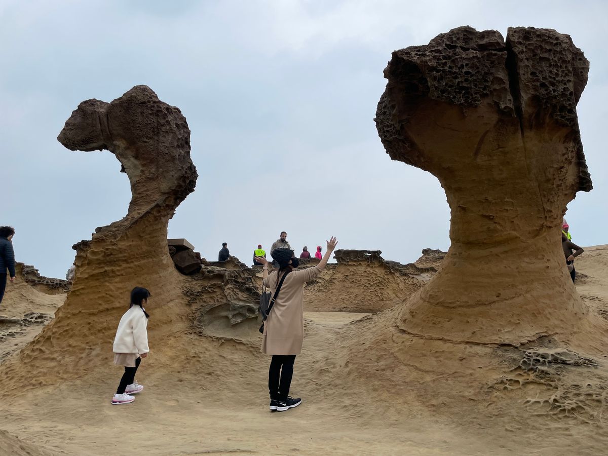 まずは、台北中心から車で1時間の「野柳地質公園」へ。ここは、台湾や韓国の人に人気で、訪れた日は日曜日と言うこともあって、駐車場はツアーバスでいっぱい。奇跡の奇岩の数々に「わーすごい!」と日本の若い女の子達の歓声も。