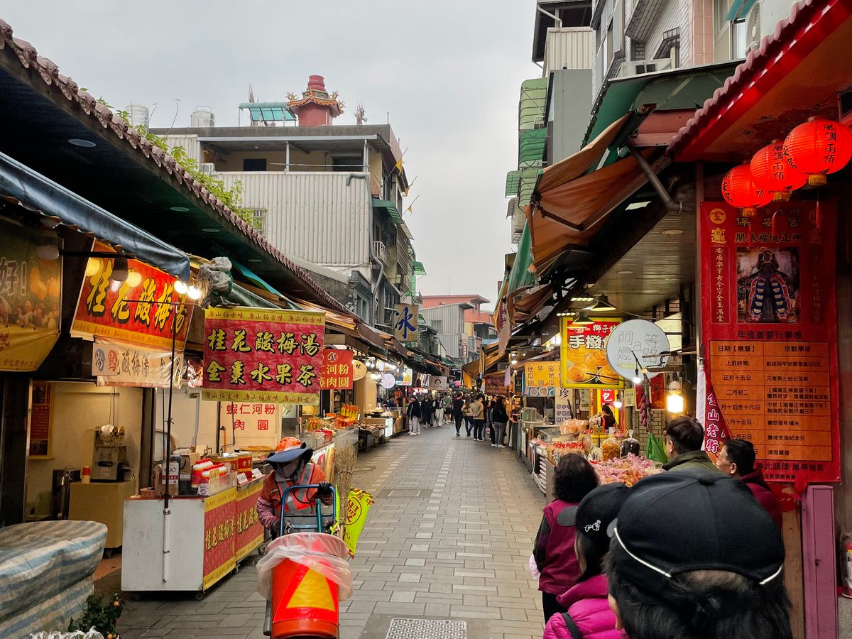 次は、野柳地質公園から車で15分ほどの「金山老街」へ。
