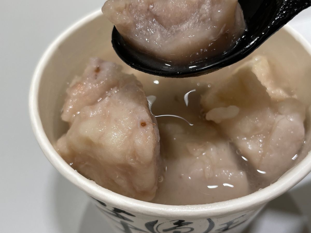 試食はローカルなお店かと思いきやモダンな店構えでの「芋圓のスイーツ」。甘さ控え目で甘い物が苦手な人でも大丈夫。コーヒーゼリーに似た「仙草」ゼリーは体に良さそう。