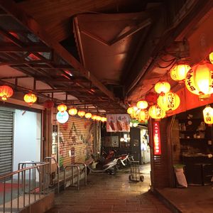 九份は既に暗くなってからの訪問でした。土日は交通規制がかかるため途中でバスの乗り換えが必要で、遅く行くと解除されてるとのことでした。お店が閉まっていて少し寂しかったですが、静まり返った薄明かりの街は雰囲気があって素敵でした。
