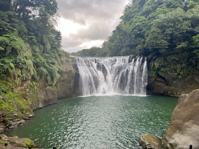 14時にホテルでピックアップしていただき、十份の滝から天燈上げへ。
