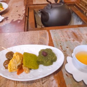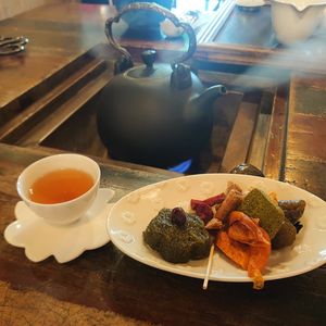 一旦フリータイムになり散策を楽しんだ後、有名な阿妹茶楼を斜め上から見下ろす事ができる九份茶坊の予約がされていて、香り高い台湾茶を楽しみました。店員さんもとても親切で、カタコトの日本語で丁寧に説明してくれたり、夕暮れのタイミングで声を掛けてくれて写真も撮ってくれました。