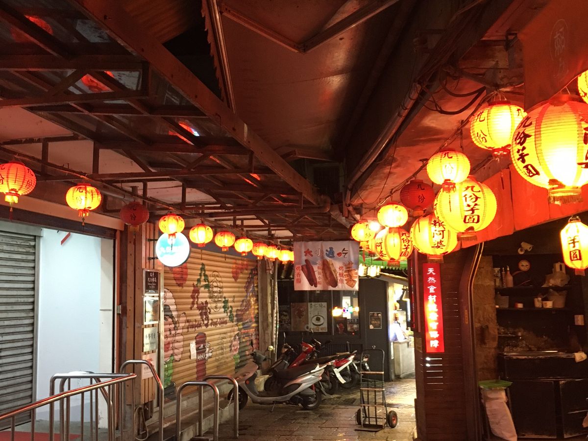 九份は既に暗くなってからの訪問でした。土日は交通規制がかかるため途中でバスの乗り換えが必要で、遅く行くと解除されてるとのことでした。お店が閉まっていて少し寂しかったですが、静まり返った薄明かりの街は雰囲気があって素敵でした。