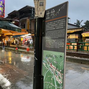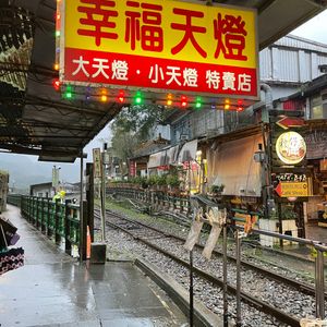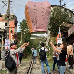十分では(空いていたので)線路の上で天燈あげ。エクストラ料金を出してカラフルなものに変えました。上げだ天燈の行方など、面白い話も聞けましたのでとても良かったです。