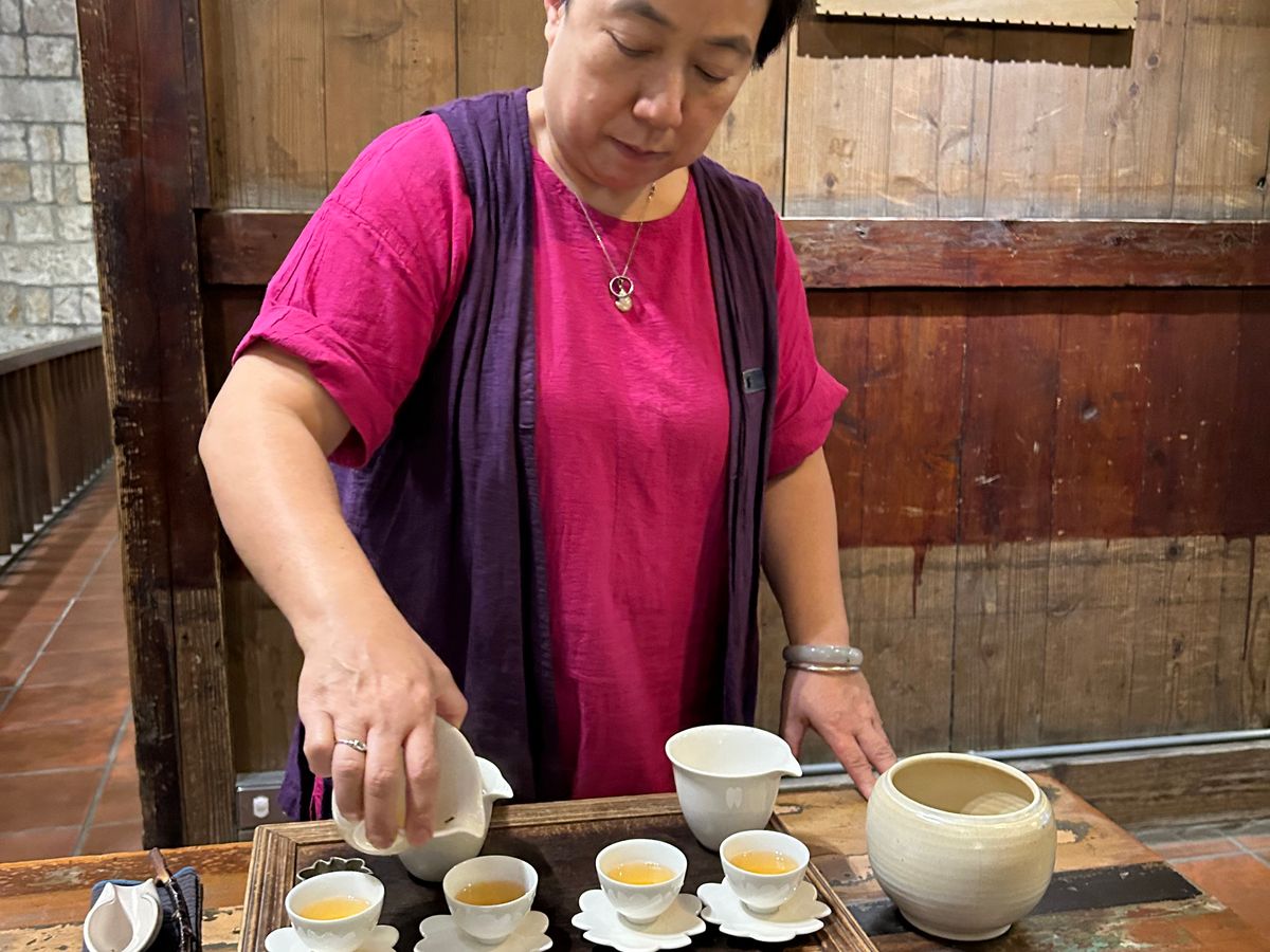 ガイドの簡さんは知識が豊富で話がおもしろいし、買った荷物も持ってくれました。九份茶坊ではお店の方にお茶の入れ方を教えていただいてゆっくり楽しむことができました。九份では絶景ポイントをまわり、写真をたくさん撮ることができました。十分ではランタンに願いを書き、夜に空高く上っていくのを見るのは忘れられない思い出となりました。一人で参加しましたが、他の参加者とすぐに仲よくなり、参加してとてもよかったです。