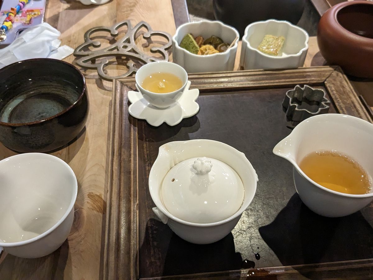雰囲気抜群の茶房で台湾茶とお菓子をいただきながら、九份が少しずつ日暮れていくのをみるのは贅沢な体験。
