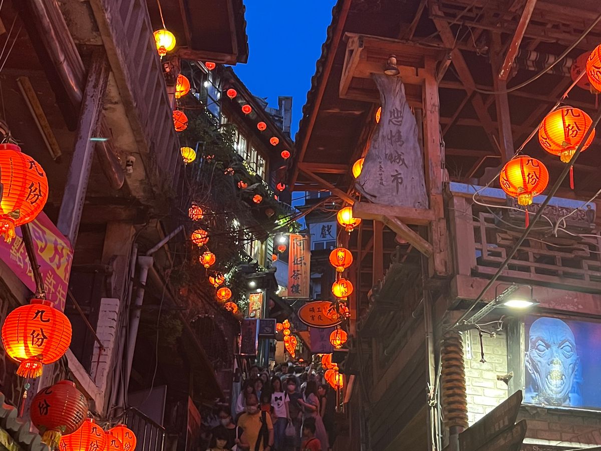 体験は、九份で老街散策とお茶体験、十份で夜に灯篭上げをしました。