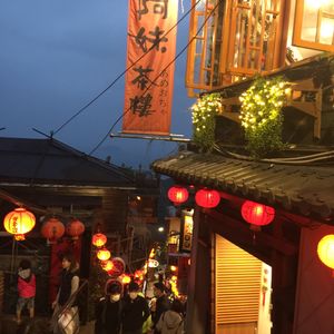 夜の九份ツアーに参加しました。集合場所のホテルへは行天宮駅から徒歩で10分くらい。ホテル前にツアーの看板が出ていて、すぐに分かりました。九份の風景はとても幻想的で、まるで映画のワンシーンのよう。黄昏の海が見える時間と提灯に火が灯る夜景の両方を味わえ大満足。今回は普段なら行列の出来るという絶景スポットでも思う存分撮影ができ、阿妹茶楼の3階テラス席にも待たずに座れました。今は中国からの団体ツアー客が来られないからなのかも。別の茶館にも行ってみたいので、是非また九份を訪れたいと思います。